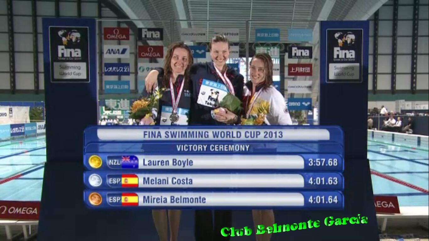 Mireia Belmonte y Melani Costa plata y bronce en los 400 libres en World Cup Tokio 2013 Video