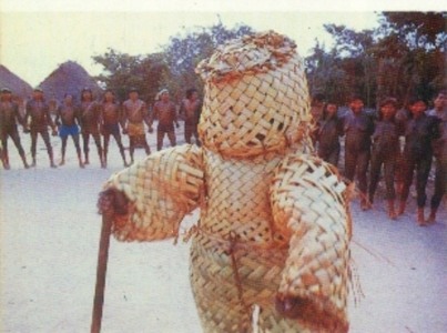 En 1952 Joao Américo Peret tradujo una leyenda de los indios Kayapos que vivían al sur de Para, a orillas del río Fresco. En ella no sólo sorprenden los hechos sino también los atuendos típicos con los que se visten en las celebraciones para rememorar el hecho. A continuación se transcribe el texto traducido de la leyenda:
