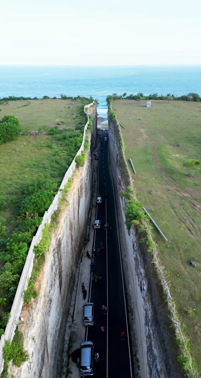Carretera excavada para llegar a la playa Pandawa beach road Bali