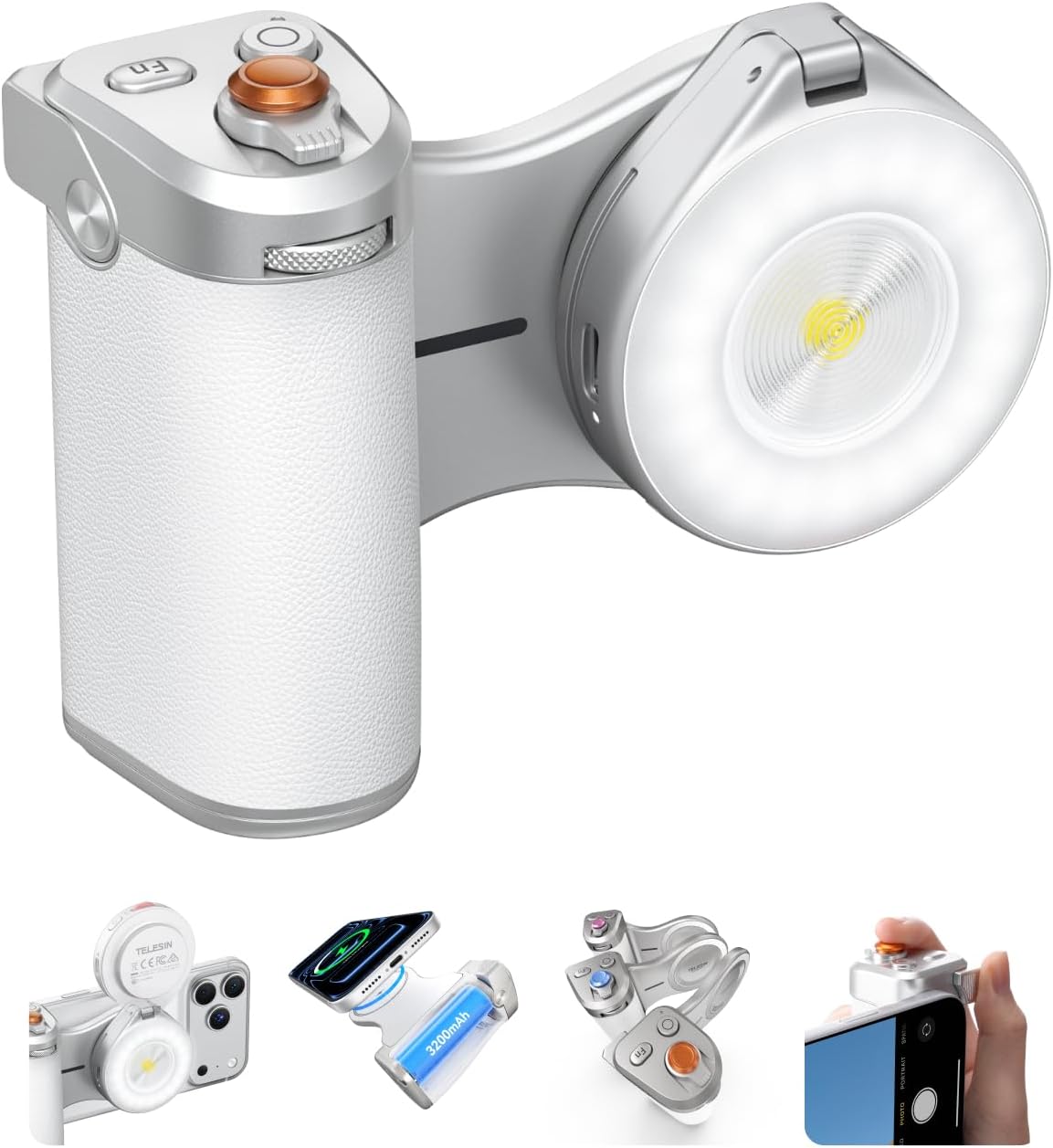 Kit de agarre magnético con batería integrada de 3.200 mAh (compatible con carga inalámbrica), diseñado especialmente para el iPhone 17 Pro Max. Con empuñadura estilo DSLR y diseño compatible con MagSafe. Incluye funda con disipación