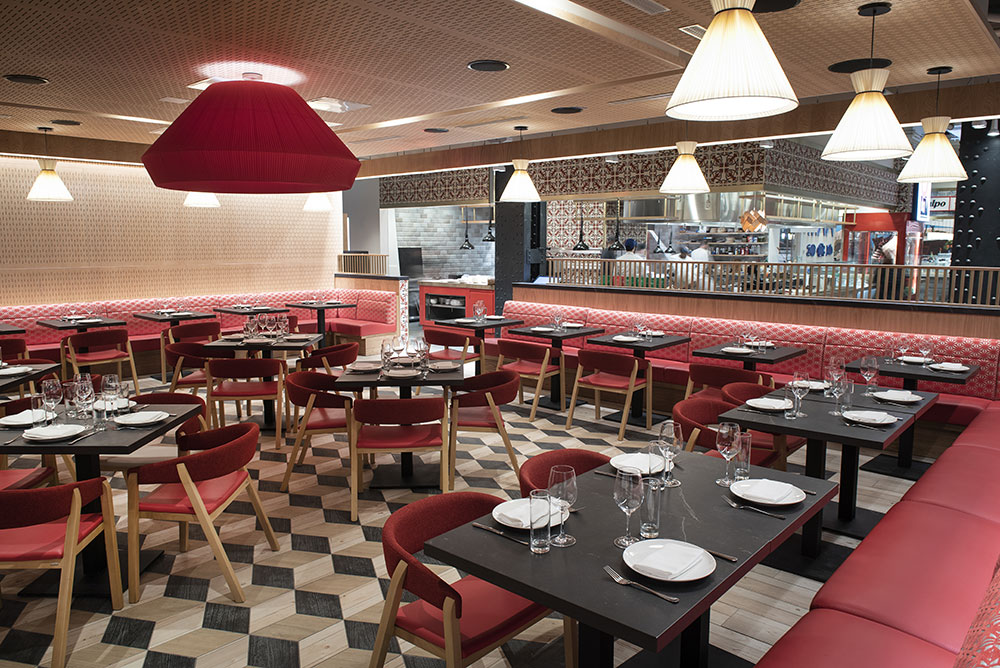 Mar, restaurante más “intimista” con barra del chef, centrado en pescado y marisco llegados de España, con recetas ligadas al mar y barra de sushi a la española, aparte de una pequeña pescadería.