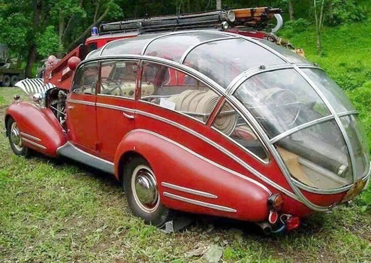 Se trata de un modelo de 1941 que se compró en 1945 y se convirtió en camión de bomberos de Brno en Checoslovaquia. También se redefinió el frontal del 853 Sport Cabriolet colocaba una potente bomba de agua de la compañía Hrček & Neugebauer, cubierta por una tapa de diseño similar a la parrilla. Los faros se integraron en las nuevas aletas con dos faros secundarios a los laterales de la parrilla cromada. Dos luces más había a ambos lados del parabrisas. Se habilitaba espacio para seis bomberos, incluyendo el conductor, en dos filas de asientos. La parte trasera se extendió donde se ubicaron dos mangueras enrolladas en espiral que proporcionaban un flujo de 1.200 litros por minuto, además de una rueda de repuesto y equipamiento contra incendios. Se mantuvo el propulsor original, un motor de ocho cilindros en línea con 4,9 litros de capacidad y 100 CV de potencia. Estaba vinculado a un cambio manual de cuatro marchas, la transmisión de serie. El modelo original era capaz de superar los 130 km/h y, aunque las modificaciones suponían un aumento de peso que restaba velocidad punta, seguía siendo uno de los vehículos de bomberos más rápidos de la época. El vehículo se mantuvo en servicio hasta principios de la década de 1960. Fue totalmente restaurado y sigue perteneciendo a la brigada de bomberos de Brno-Komín.